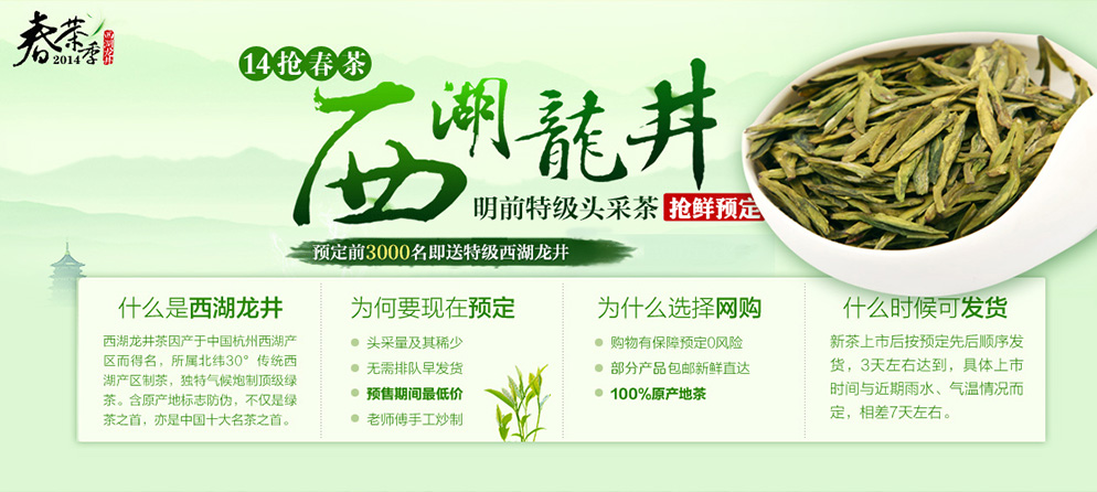 本品采用正品萬擔(dān)春AAA特級明前西湖龍井茶,以傳統(tǒng)牛皮紙包裝,盛于藍花布嵌面的木盒之中...